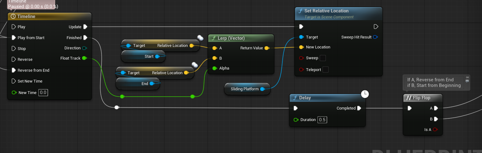 Getting the timing right took a little bit, but I wanted the platforms to move much more quickly than the others, to add a tricky element to them. They are intended to be obstacles instead of actual transportation devices after all. I set them to have a .5 delay in-between the returns.