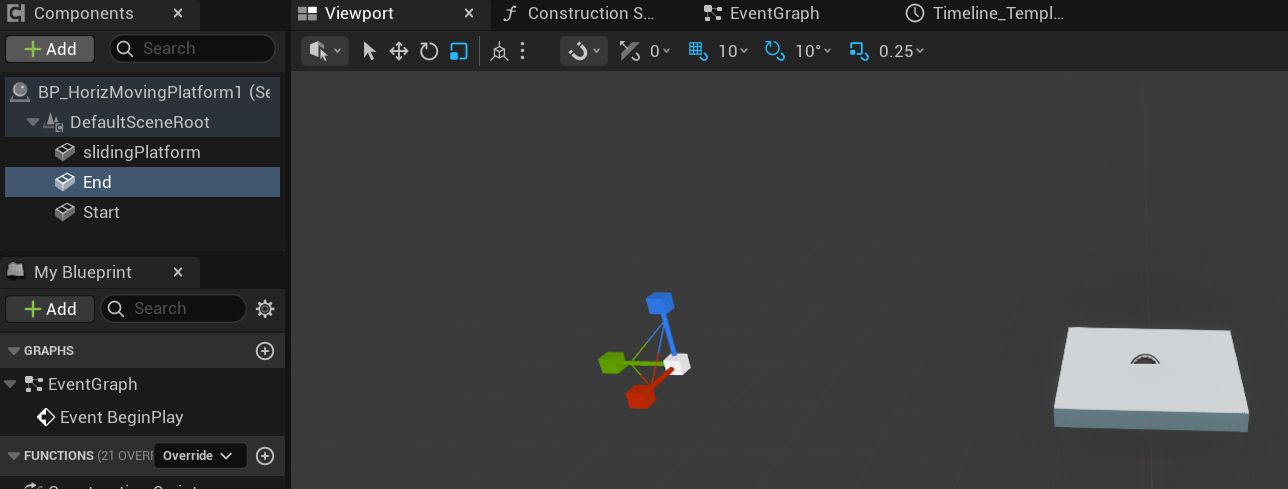 Now of course the main Point of my idea was getting it moving horizontally. Which was much more simple than I expected. I changed the end position to be a little ways to the left of the start position.