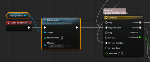 The first thing I wanted to do was change how the horizontal platforms looked, as I imaged them similar to the ones you'd find in Mario games. I struggled immensely finding the editor for the objects, and even after a dozen google searches and complaining to my partner, I decided I would just write a "set material" node into the code instead. I chose the Checkered tiles because It looked a little trippy as the platforms moved.